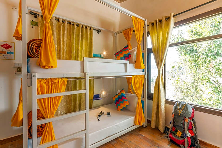 This bed in dormitory features a view.